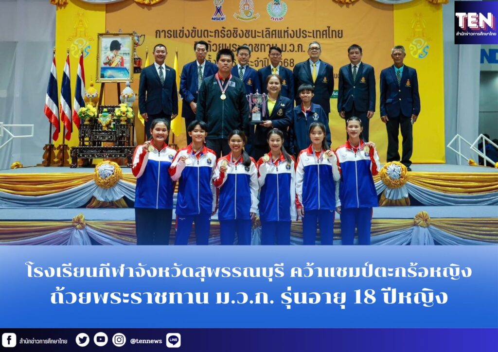 นางสมจิต บุญคงเสน ผู้อำนวยการโรงเรียนกีฬาจังหวัดสุพรรณบุรี พร้อมด้วย นายประวัติวงศ์ หาวะบุตร รองผู้อำนวยการฝ่ายพัฒนากีฬา(หัวหน้าผู้ฝึกสอนกีฬาเซปักตะกร้อหญิง) พร้อมผู้ฝึกสอนและนักกีฬาเซปักตะกร้อ รับถ้วยรางวัลพระราชทานตะกร้อหญิง จากผู้แทนพระองค์รายการ การแข่งขันตะกร้อชิงชนะเลิศแห่งประเทศไทยชิงถ้วยพระราชทาน ม.ว.ก. ครั้งที่46 ประจำปี 2568 ระหว่างวันที่ 5-11 สิงหาคม ณ ศูนย์การค้าแฟชั่นไอซ์แลนด์ กรุงเทพมหานคร เมื่อวันที่ 11 สิงหาคม 68 ที่ผ่านมา
